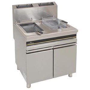 Fritadeira a gás c/ 2 cubas de 15+15 L, de móvel