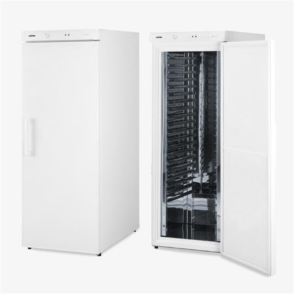 Conservador vertical para panificação e pastelaria. 20 Suportes para tabuleiros. Termómetro analógico. Interior em INOX. Opção fecho c/ chave.