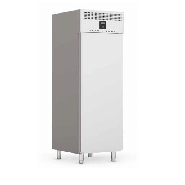 Interiores e exteriores em aço inoxidável. Painel traseiro em chapa galvanizada. Os cantos internos, as guias facilmente removíveis e as grelhas permitem facilidade de limpeza e de higiene. Controlador digital com descongelação automática. Portas com fecho magnético e vedante de fácil substituição. Iluminação interior. Gás R290 refrigerante de acordo com a normativa em vigor. Isolamento em poliuretano injetado livre de CFC’s com uma densidade de 40Kg/m³. Para os modelos de temperatura negativa moldura das portas com resistência de aquecimento. Pés em aço inoxidável reguláveis.  Aparadeira de condensados inferior.
