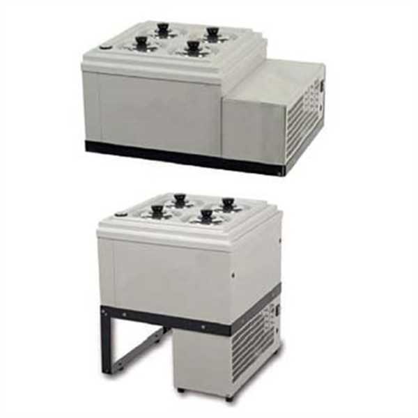 Vitrina expositora para gelataria com a unidade frigorifica na lateral; Com termostato eletrónico; Refrigeração estática; Temperatura regulável positiva e negativa.